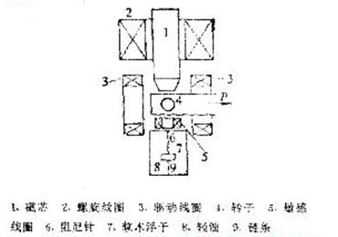 由圖22可見(jiàn),除了用于磁懸浮轉(zhuǎn)子的螺旋線(xiàn)圈2外,在真空室下邊還設(shè)置一敏感線(xiàn)圈5,通過(guò)伺服電路控制螺旋線(xiàn)圈2的電流,使轉(zhuǎn)子懸浮在預(yù)定高度。在真空室兩側(cè)的一對(duì)驅(qū)動(dòng)線(xiàn)圈3產(chǎn)生旋轉(zhuǎn)磁場(chǎng),驅(qū)動(dòng)轉(zhuǎn)子以每秒200~400轉(zhuǎn)的速度自轉(zhuǎn)。雖然轉(zhuǎn)子在給定的垂直位置會(huì)自動(dòng)地趨向磁場(chǎng)處(一般在垂直對(duì)稱(chēng)軸上),但若受外界擾動(dòng),轉(zhuǎn)子將圍繞軸作水平振動(dòng)。圖中緊臨真空室下方的阻尼鋼針6可使這種振動(dòng)衰減。